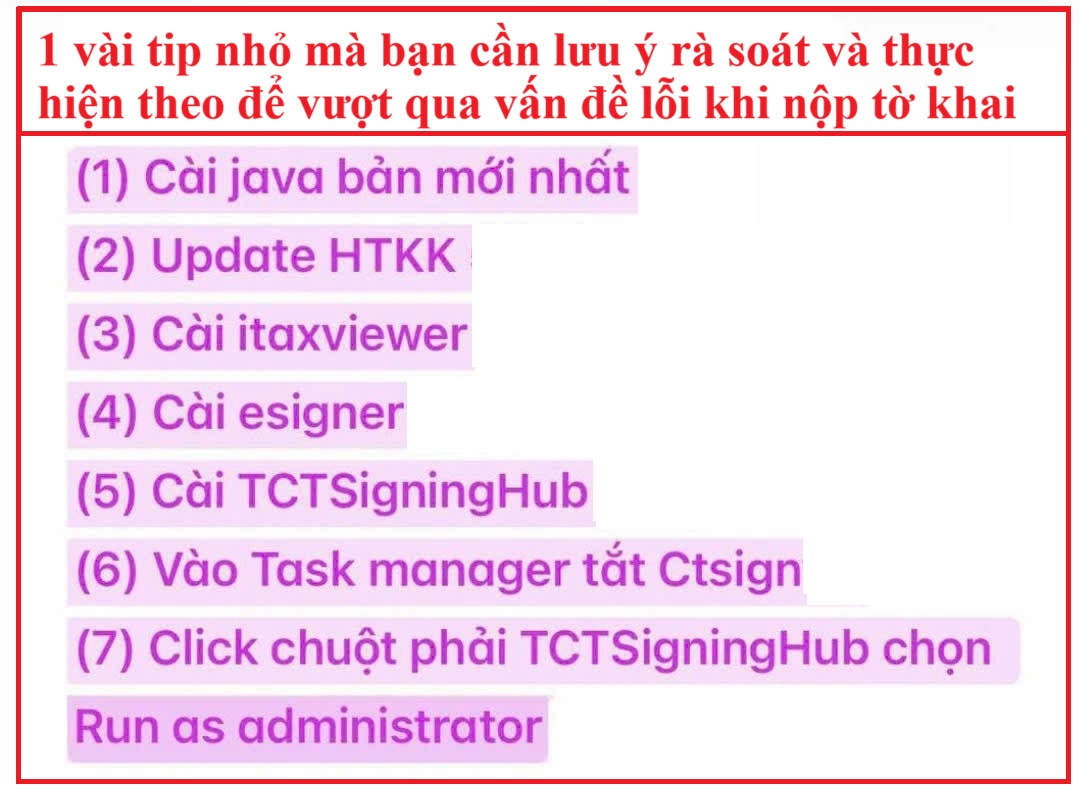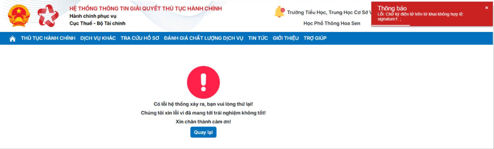 Trường hợp gặp lỗi khi ký tờ khai, tham khảo hướng dẫn xử lý một số lỗi thường gặp tại đây.