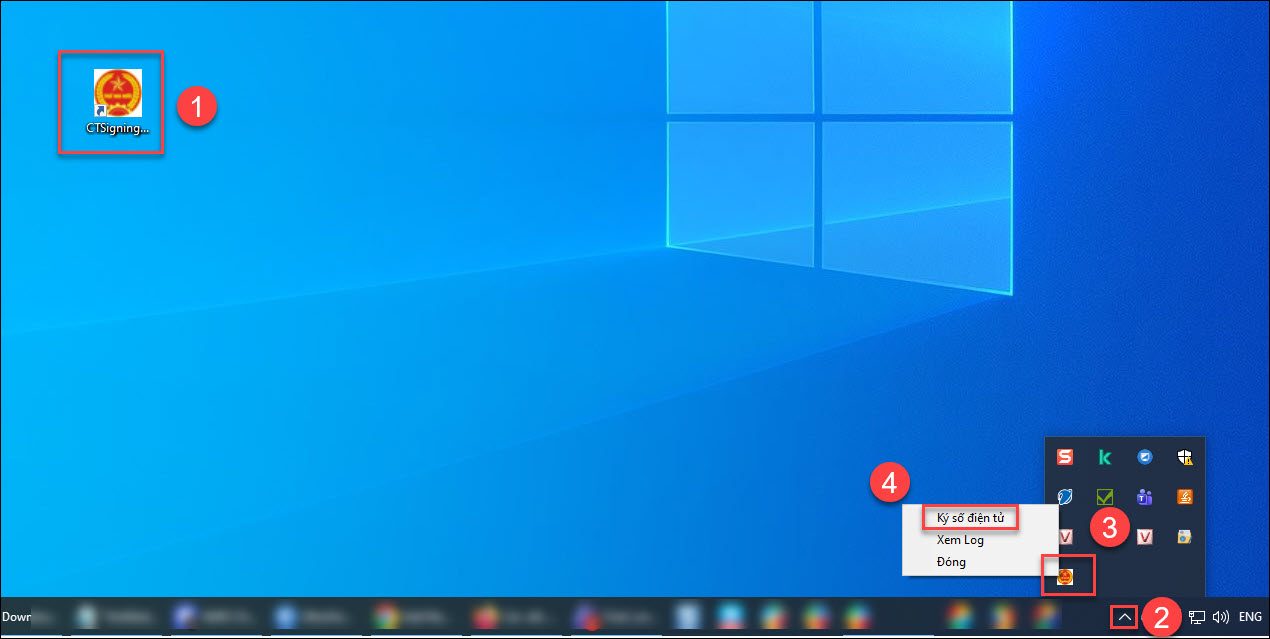 Bước 3: Nháy chuột phải vào biểu tượng phần mềm ký số ở góc dưới cùng bên phải, chọn Ký số điện tử